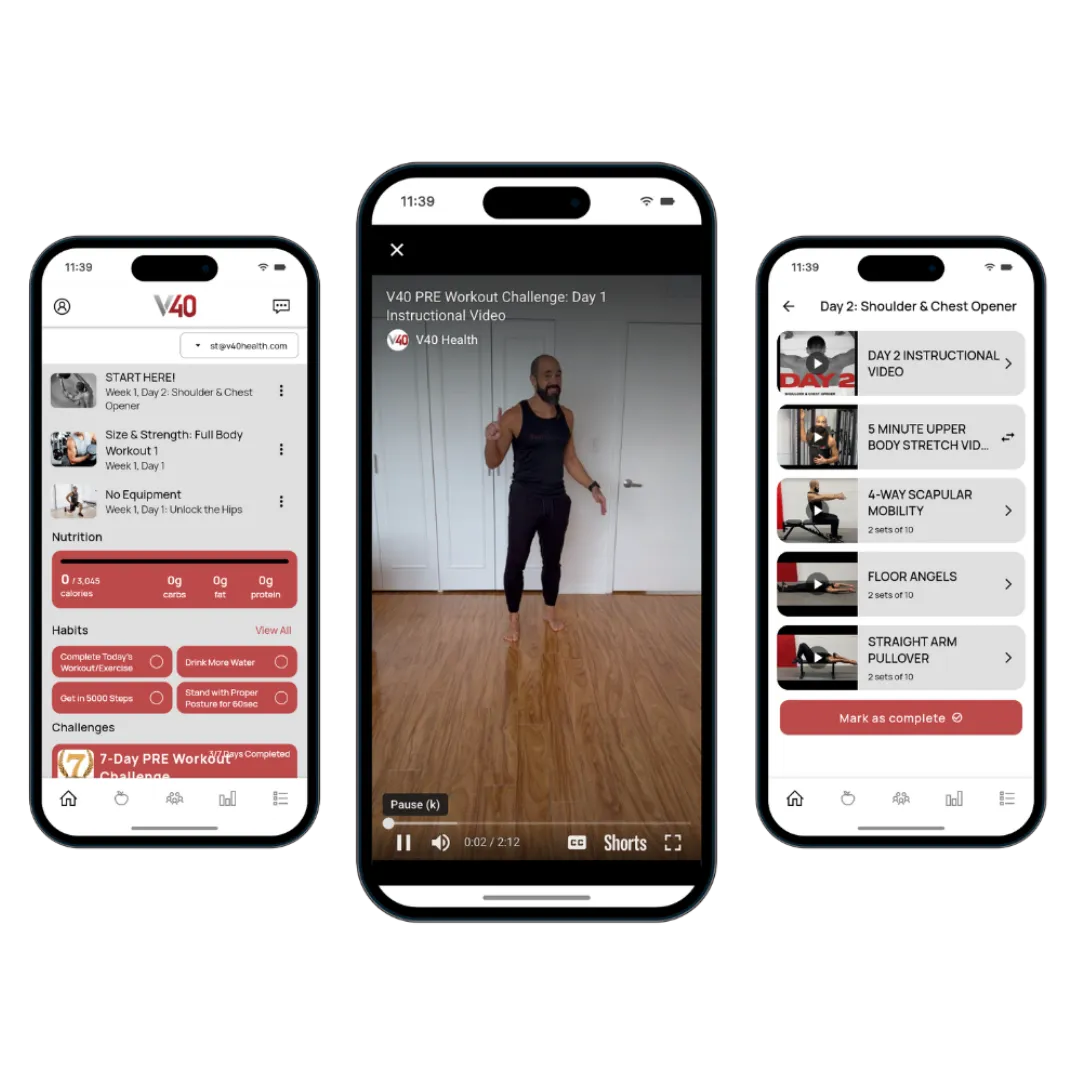 BY DOWNLOADING, YOU ALSO WILL UNLOCK THE 7-DAY PRE-WORKOUT CHALLENGE INSIDE THE V40 APP.